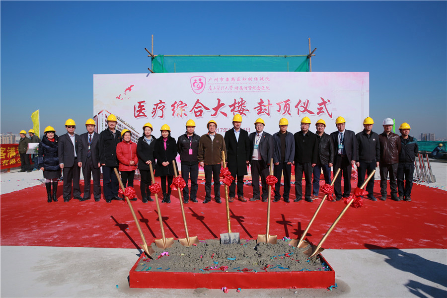 12月21日上午,陽光燦爛,番禺區何賢紀念醫院(區婦幼保健院)迎來了激動人心的歷史時刻——醫療綜合大樓順利封頂。區委常委、區政府黨組副書記崔學軍,區政府辦調研員何俊聲、市橋街道辦事處副主任陳杏甜、區住建局副局長黎校、區基建辦副主任鄭瑞峰,區衛計局邊葉兵局長、李潔蓉副局長、梁翠明調研員及何賢紀念醫院、監理單位、施工單位等相關部門領導出席了儀式。