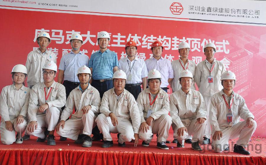 2017年10月26日上午,廣東省首例,全裝配式鋼架結構+ALC綠色建筑體系示范項目--庫馬克大廈主體結構封頂儀式在深圳光明新區庫馬克大廈工地隆重舉行。